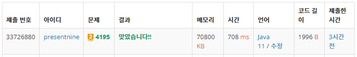 여담으로 문제를 통과하는 데는 한 가지가 더 필요했는데, 바로 최상단 노드를 찾는 함수의 개선이다. 기존에는 단순히 목적에만 충실히 while 문을 통해 최상단 노드를 찾아 반환했는데, 이러한 경우 구조가 복잡해질수록 while문을 많이 돌 수가 있다. 이를 해결하기 위해 함수를 재귀호출로 변환하면서 답이 반환될 때 특정 노드의 부모 노드를 동시에 최상단 노드로 초기화하여, 이후 그 집단의 최상단 노드를 더 쉽고 빠르게 찾을 수 있도록 개선하여 시간 초과를 통과했다.